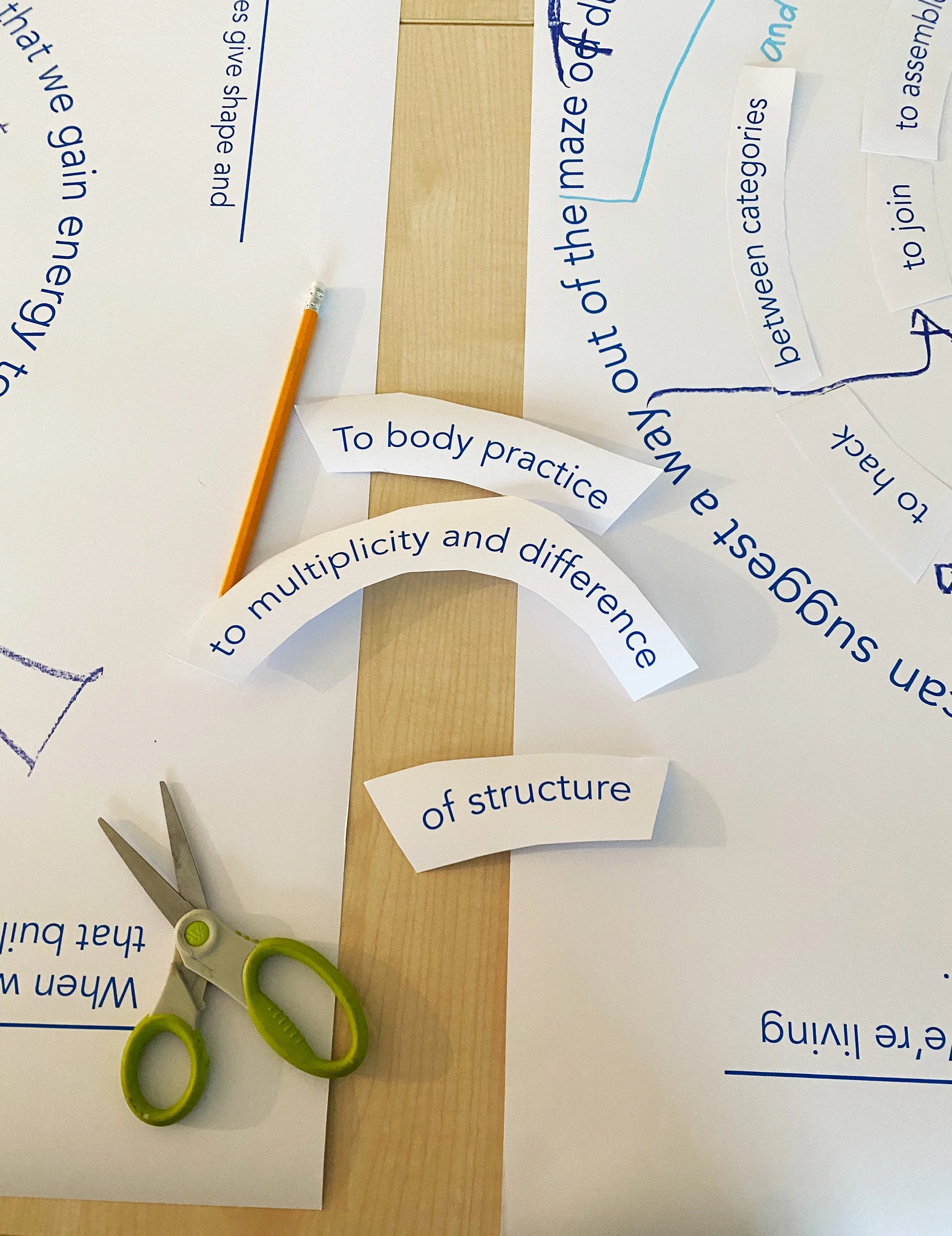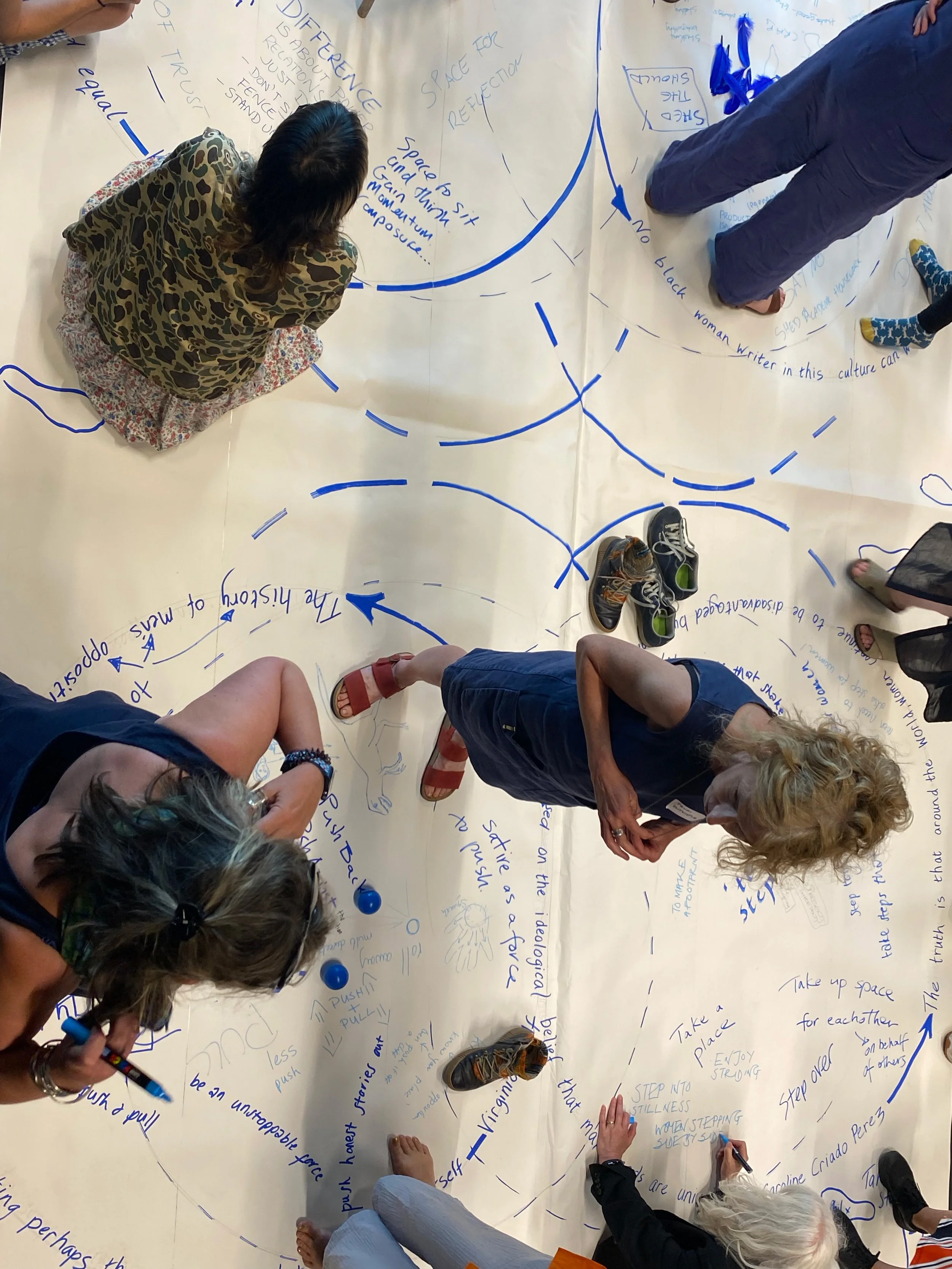 Wise Women 1, was a RDF-funded project in 2022 working with Early Career Researchers and mature women in the Leeds School of Arts. Joanna took the vehicle of a dance score and invented a floor diagram of conversation zones to facilitate the development of an Leeds School of Arts creative publication using the methods of diagram making to facilitate the Manifesto statements in a collaborative work.